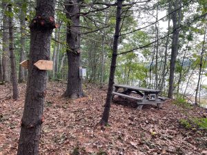 New Campsite in Prospect On Sept. 24, 2023, 13 volunteers gathered to make the 11th campsite of the PRPT, located on Bowden Point in Prospect. We worked from 9 am to 1 pm to clear and mow two small fields, clear the ground of logs and brush for tents, carry in a picnic table, an